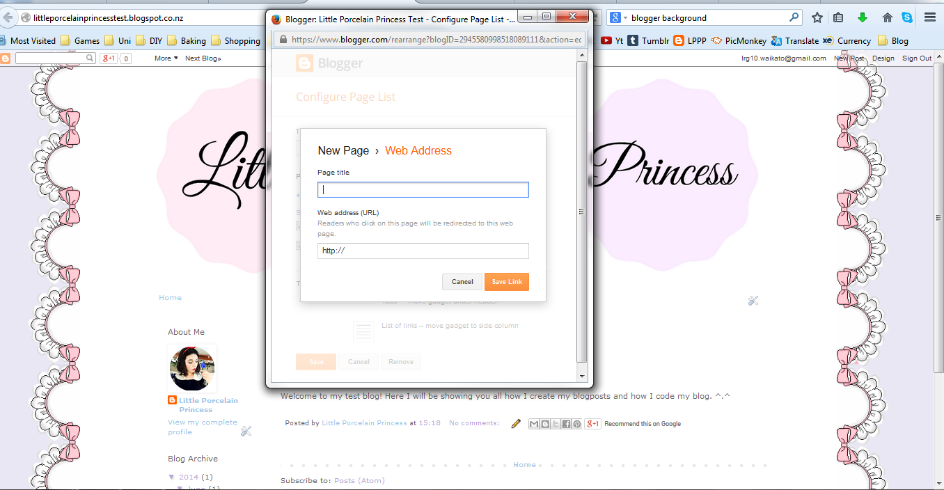 To create pages that show tagged posts (Nails, Beauty, Reviews etc) you will need to first view your blog, and click the options/tools button beside your pages. This shows you some different options including a button that says, "Add an External Link". To find the hyperlink for your tagged posts, simply click one of the tags at the bottom of one of your posts. Copy the hyperlink at the top of the page and insert it into this little box. It'll automatically update with the posts that you tag under that tag.